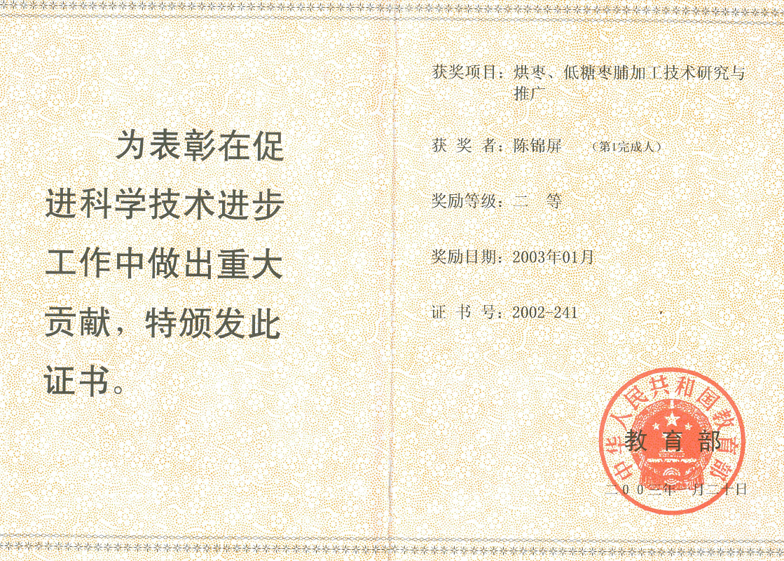 陈锦屏同志,女,汉族,湖南省益阳县人,教授、博士生导师。西北农学院毕业后留校,一直从事食品科学与工程学科的教学、科研、生产工作。1985年至1993年任首届西北农业大学食品科学系系主任。1997年调入h小说网 ,任食品科学系系主任。陕西省委、省人民政府决策咨询委员会特邀委员,陕西省果蔬深加工技术研究中心主任,1991年任教授,1993由国务院学位委员会批任博士生导师。 自1988年开始至今,已培养了42名硕士研究生,16名博士研究生。主讲的“果品蔬菜加工学”,获省优秀教学成果一等奖。先后6次分别获部(省)级“优秀教师”称号。陈锦屏同志主持完成了国家及部(省)级下达的科研课题18项,发表学术论文180多篇。主持的“果品蔬菜人工干制技术研究与推广”课题,在全国15个省市推广应用,产生了显著的经济效益和社会效益。 |